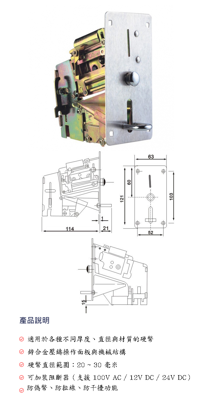 白鐵面板_機械式投幣器 附微動開關 (可自行調整幣值)