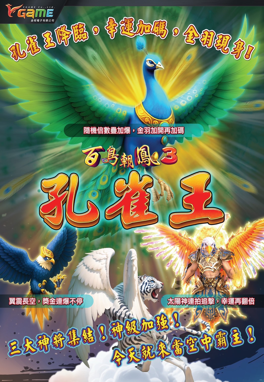 【百鳥朝鳳3-孔雀王】 孔雀開屏介紹 遊戲介紹請點擊 https://www.youtube.com/watch?v=YVOikIkpiVQ 單機版,區網連線版本,連鎖店版本。 只寄不賣,歡迎合作。